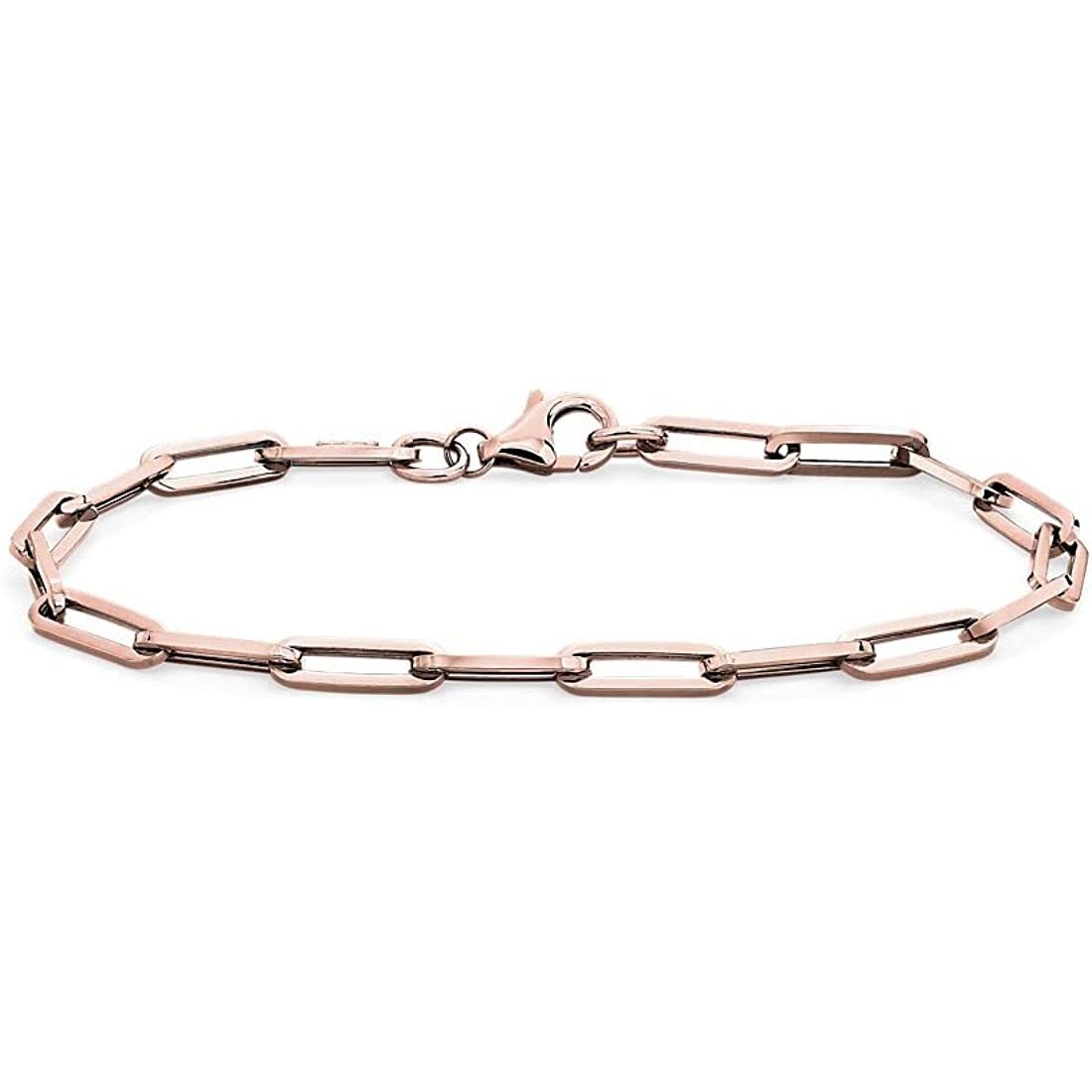 This Rose Gold Paperclip Link Charm Bracelet is crafted using 14k?rose gold on steel and features an intricately designed paperclip-style link. This classic yet modern design adds a timeless touch of elegance to any outfit.