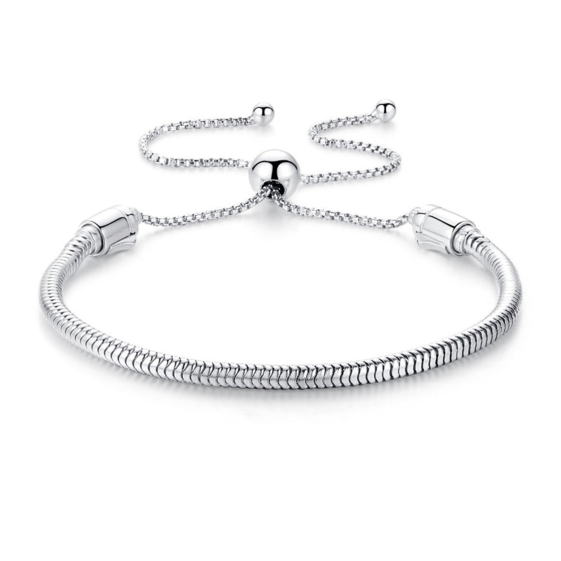 Adjustable Snake Chain Silver Bead Charm Bracelet